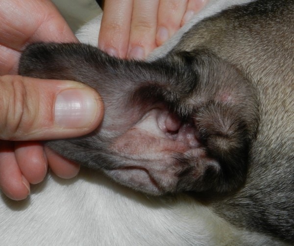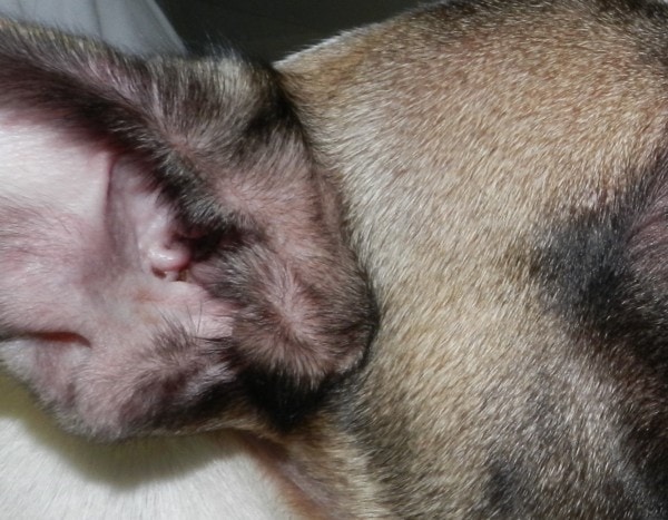 Figure 3: Vue d’ensemble de la face interne du pavillon auriculaire droit à 6 semaines : noter la résorption totale de la lichénification.