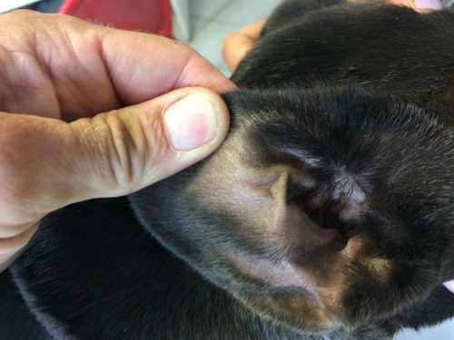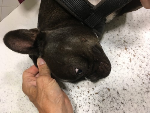 Une chienne stérilisée, Bouledogue français de 3 ans, est présentée à la consultation pour une dermatite prurigineuse généralisée évoluant depuis plusieurs jours. Son passé dermatologique est composé de nombreux épisodes de prurit et pyodermites traités par des confrères à l’aide de corticoïdes et antibiotiques.
