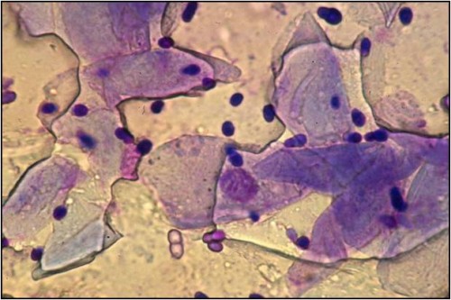 Examens complémentaires: les raclages ne mettent en évidence aucun élément figuré. Les calques et tests à la bande adhésive révèlent une présence notable de Malassezia au niveau du pli vulvaire. La trichoscopie est négative.