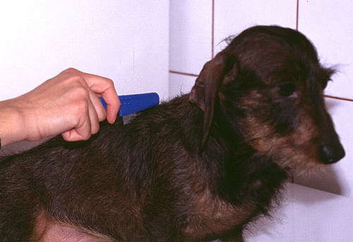 L'animal est assis sur une table recouverte d'une grande feuille de papier.
