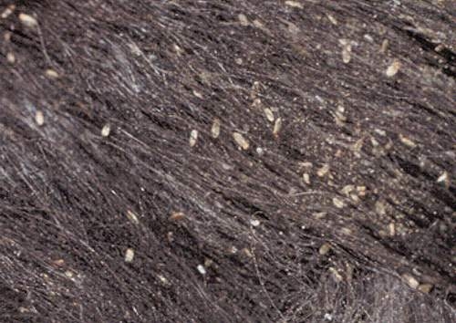 Des oeufs et des lentes sont fixés aux poils et sont facilement repérables.