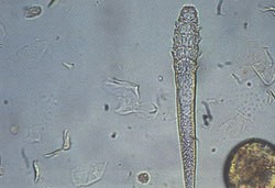 Un examen à la lampe de Wood est négatif. Un trichogramme ne met rien en évidence.